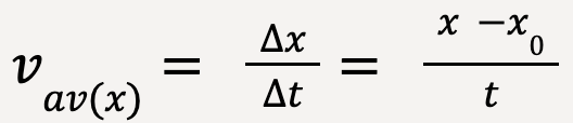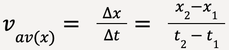 The average x-velocity (or component of average velocity along the x-direction) is then given as the component of the displacement vector along the x-axis divided by the time interval;