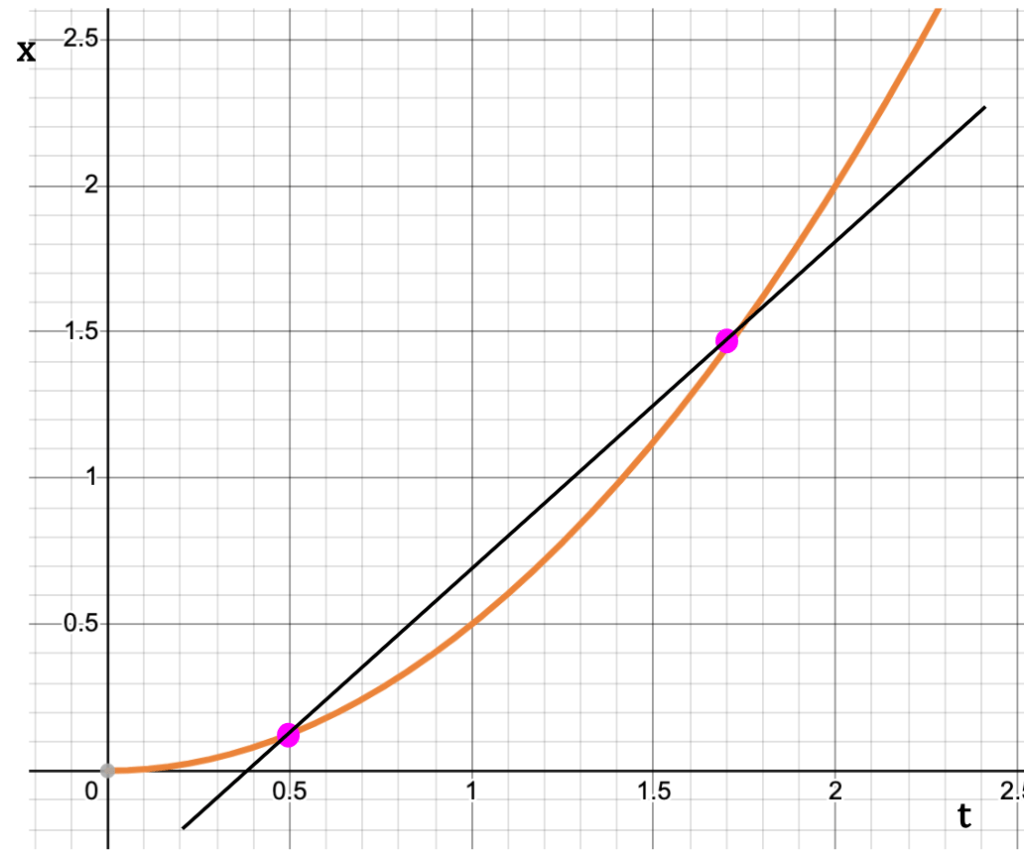 Note: This expression is true only because acceleration is constant and velocity is increasing with a steady rate.