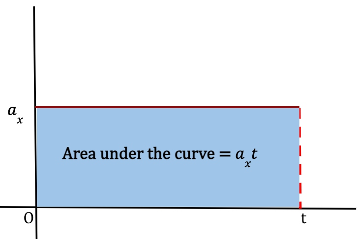 Note: The area under the ax-t curve between the given time interval is always equal to the change in velocity even if acceleration is not constant. However, in that case, v – v0x would not necessarily equal axt. Similarly, the area under the vx-t curve between the given time interval always gives the change in position of the particle even if acceleration is not constant. However, equation 16 would no longer apply.