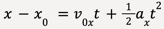 - (1/2)axt2: The displacement of the particle due to change in velocity caused by a non-zero acceleration