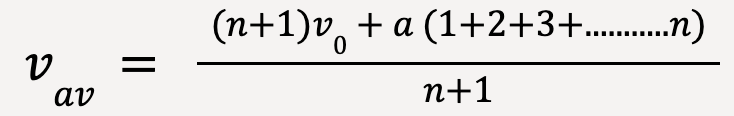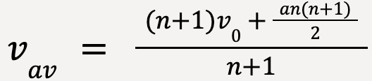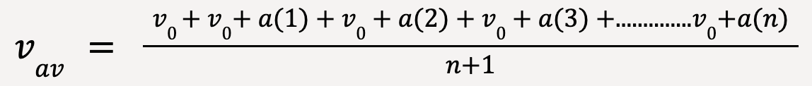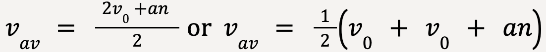 Therefore, the average velocity, vav is equal to the average of initial velocity, v0 and final velocity, v0 +an.