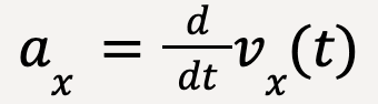 Similarly, x-acceleration can be determined from the x-velocity function, vx(t) using: