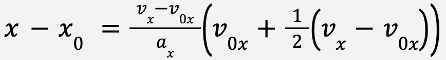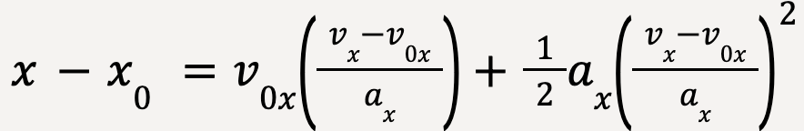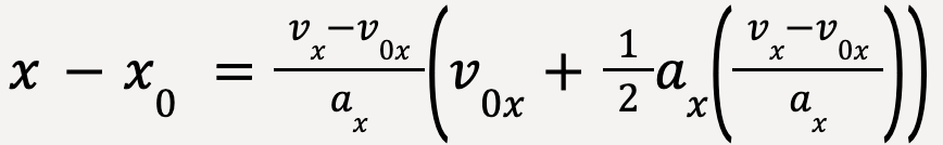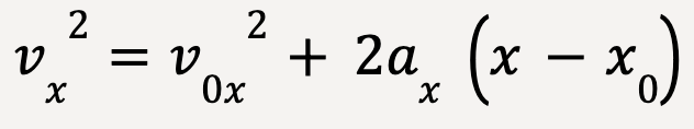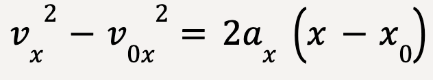 Finally, an equation of motion for constant acceleration that does not include time can be derived from equations discussed earlier.