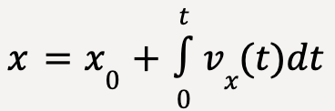 Similarly, the same procedure can be applied to a vx-t graph such that change in the position (or displacement) of the particle is equal to the time integral of the x-velocity;